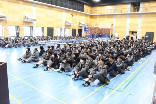 3回の発表時間が終わり、高校1・2年生は第一体育館に集まり、副校長先生より「高校2年生は上手に発表をしていたが、発展途中であり、もっと上を目指して欲しい。高校1年生は来年自分がどんな発表をするか考えながら日々学んでいって欲しい。」と講評をいただきました。