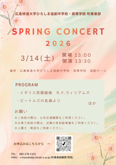 【吹奏楽部】Spring Concertを開催します!