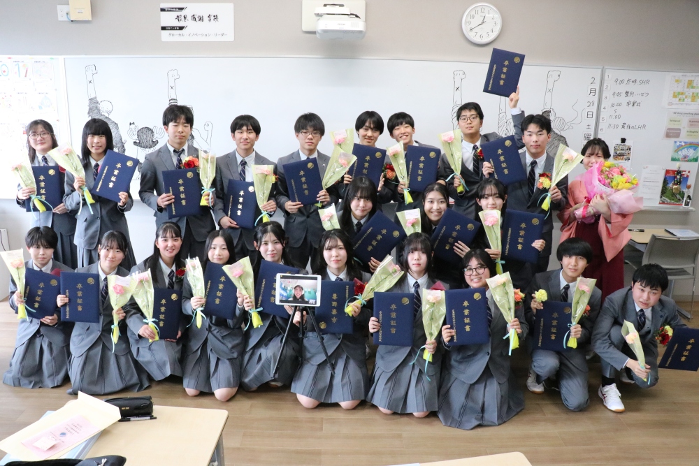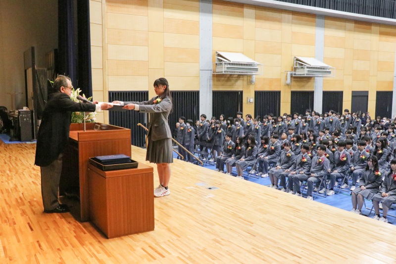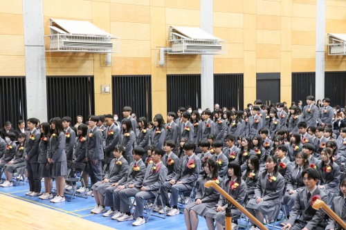 昨日の雨もやみ、春らしい暖かな2月28日(土)、卒業証書授与式が挙行され、222名の生徒が学び舎を巣立ち、それぞれの道へと羽ばたいていきました。
