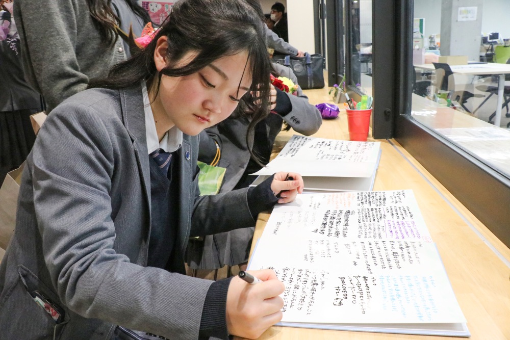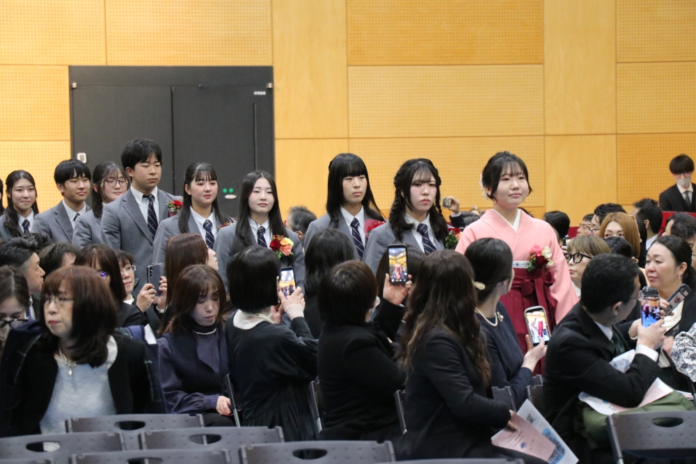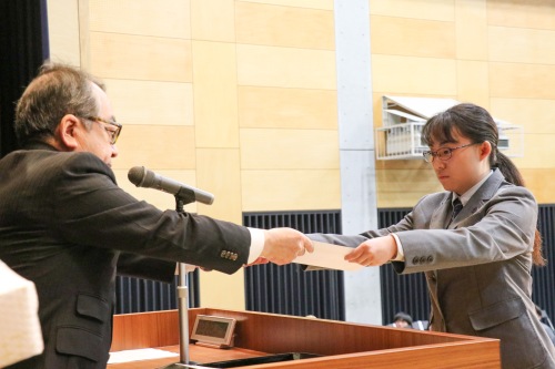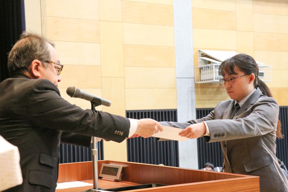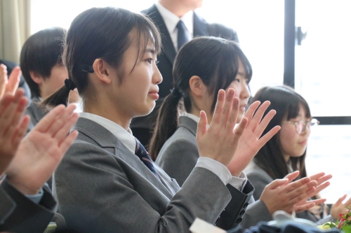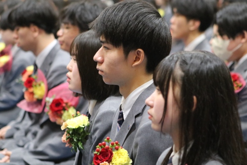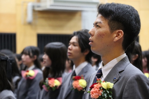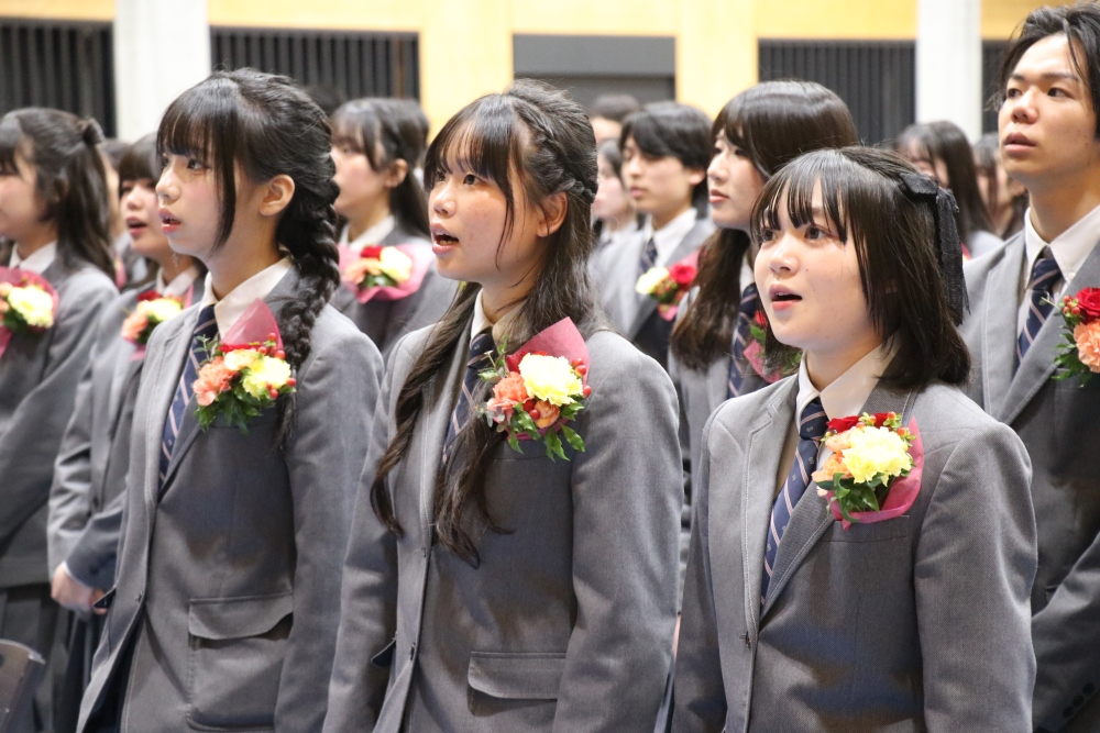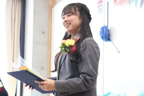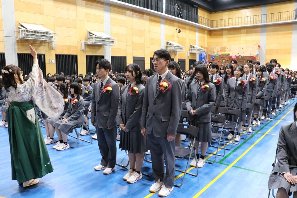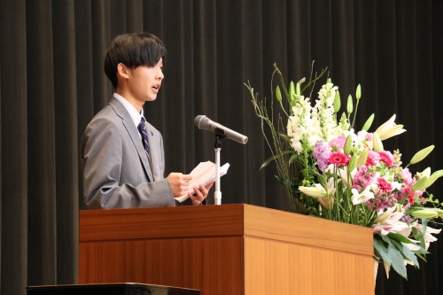 在校生送辞では、誰かのために頑張り、仲間を支え、責任をもって行動する先輩の姿を見たことで勇気をもち、自分たちが頑張って来れたこと、そして卒業生の今後のさらなる成功を祈る言葉が語られました。