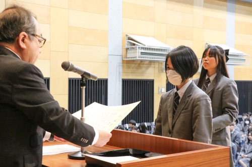 校長先生の式辞では、3年間の高校生活の中で、生徒一人ひとりが得難いチャレンジをし、大きく成長したことに触れられました。列挙すればきりがありませんが、新設クラブの初勝利、全国大会3年連続金賞の快挙、探究活動における校則改定、食品開発、地域ボランティア……。本当にたくさんの経験をしました。