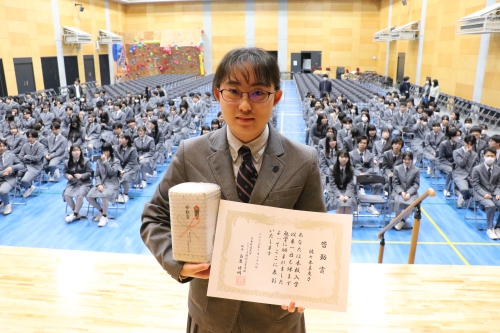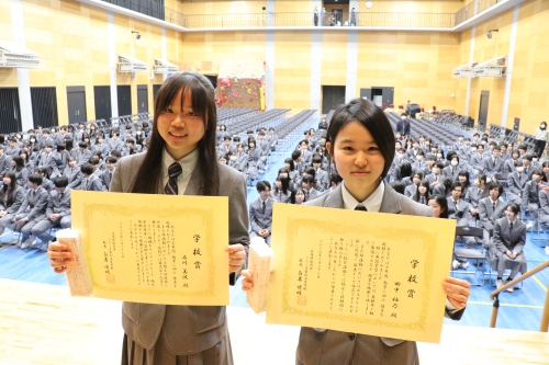 ※学校賞とは、学内にてよく建学の精神を体し伝統ある校風のもと学業にはげみ他の模範として優秀な成績をおさめた者に授与される賞