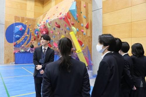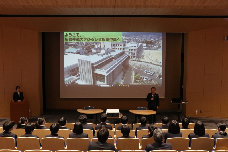 3月10日(火)、広島市立砂谷中学校2年生19名のみなさんが本校を訪問されました。今回の訪問は、高校の雰囲気や授業、施設などを実際に見学しながら、今後の進路について考えるきっかけを得ることを目的として行われました。