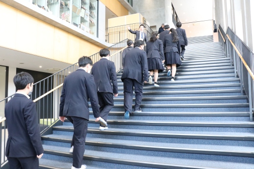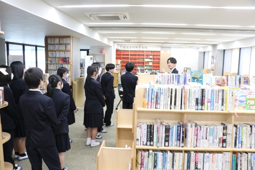 当日はまず校舎見学を行い、普通教室だけでなくさまざまな学習スペースや施設を見学しました。中学生のみなさんは、校内の設備や学びの環境の充実ぶりに驚いた様子を見せながら、興味深く見学していました。続いて授業見学では、実際に行われている授業の様子を見学し、高校での学びの雰囲気を体感してもらいました。真剣に授業に取り組む高校生の姿を、関心をもって見学する様子が印象的でした。