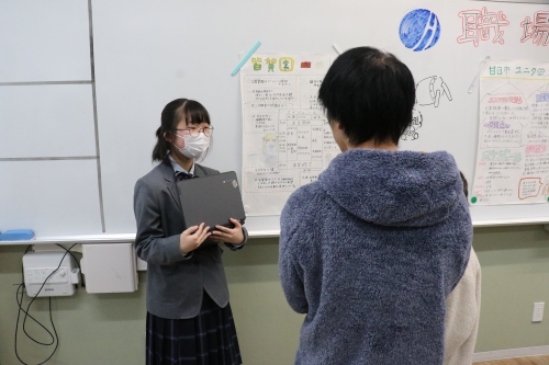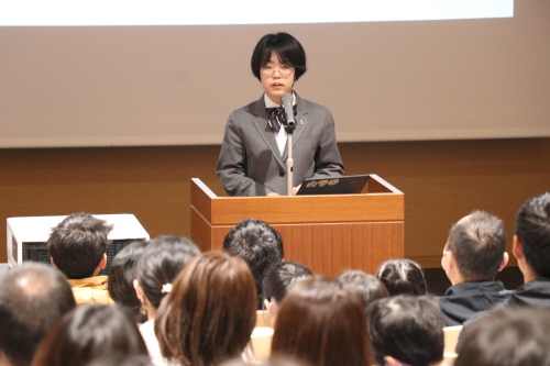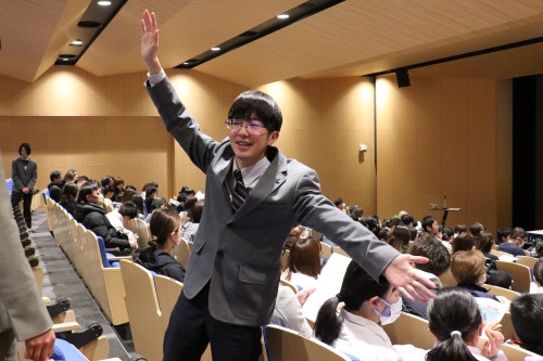 そして、中学3年間の教育プログラムを経て、多くの生徒が力をつけて、大きく成長している、その代表として「Kyoso Presentation Contest」の日本語弁論部門で最優秀賞を獲得した2年生の大原さんと、英語レジテーション(暗唱)部門の最優秀賞の1年生の奥原さんの発表がありました。 二人の発表は非常に素晴らしく、オープンスクールが終了後、参加された保護者の方からも多くのお褒めの言葉をいただきました。 この二人の発表は、本校の公式YouTubeにも動画が掲載されています。ぜひ、ご覧ください。