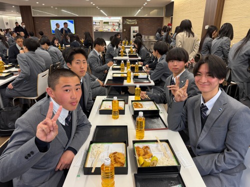 模擬授業の後は、大学の食堂で昼食を取りました。大学の雰囲気を感じながら食事を楽しみ、売店などを見て回る姿も見られました。
