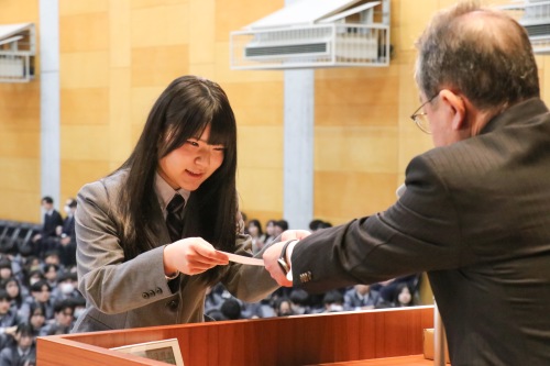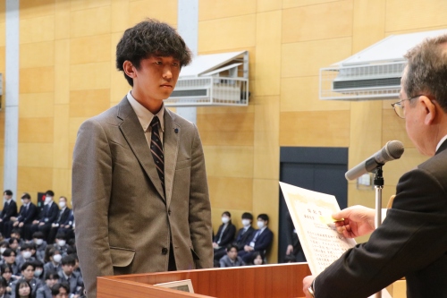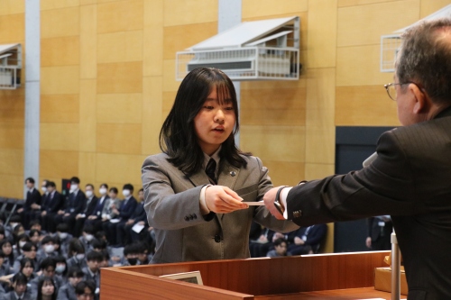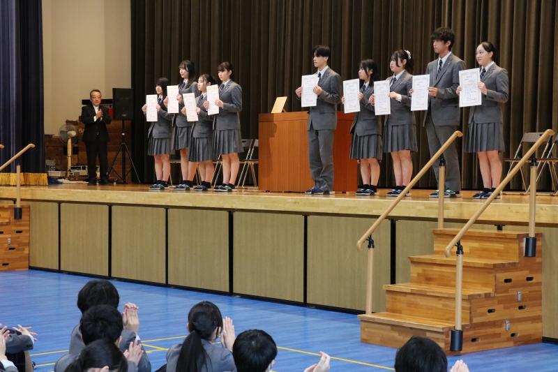 本校の教育目標である「グローカル・イノベーション・リーダーの育成」を体現した生徒たちに贈られる「協創賞」の表彰が行われました。