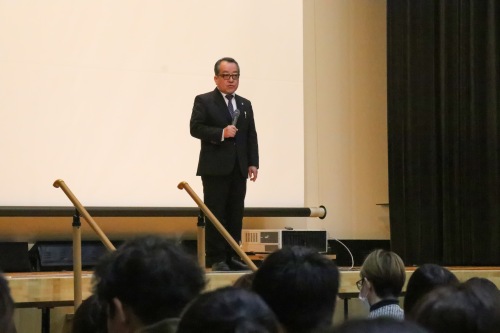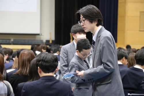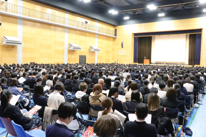 また、高校教頭からは、生徒スローガンである「AIM HIGH ~高みを目指す~」が紹介されました。「常に挑み続ける志を持ってほしい」「チャレンジ精神を持って、あらゆることに挑戦してほしい」というエールは、これから始まる3年間の道標となったはずです。