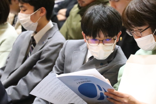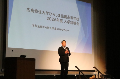 校長からは、新入生の皆さんが丁寧で充実した学校生活を送れるよう、教職員一同が万全の準備を整えて待っていること、そして「安心して入学してほしい」という温かいメッセージが送られました。この説明会自体が入学に向けた大切な「準備」の第一歩。新入生たちは、使用端末や身だしなみ、通学方法、家庭学習の時間など、各担当教員からの詳細な説明を一つひとつ確認しながら、真剣な表情でメモを取っていました。その真摯な姿からは、新しい生活に対する期待と誠実な意気込みが感じられました。