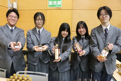 会の最後には、園芸部がこれまでの活動で制作したオリジナル商品の紹介が行われました。説明会終了後の販売会では、多くの方に足を運んでいただき、会場は温かな活気に包まれました。