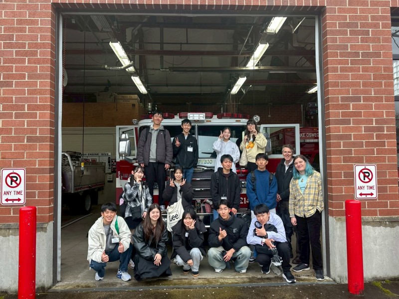 今日からPIAでのアクティビティが始まりました。午前の授業では簡単な英会話などを習い、午後からは警察署と消防署の見学に行きました。学校の後は、ホストファミリーがダウンタウンへ連れて行ってくれました。ダウンタウンは街の中心部にあたるとても発展している地域で、バスやトラム(路面電車)など交通機関もたくさんあります。ビルがたくさんある一方で、緑や自然が整備された川沿いでお花見やランニングを楽しむ人もたくさんいて、ポートランドが住みたい街と言われる所以が少しわかった気がしました。ホストファミリーが歩きながら街を説明してくれて、自分はそれをフライドチキンを食べながら聞くというとてもアメリカンな経験ができました。
