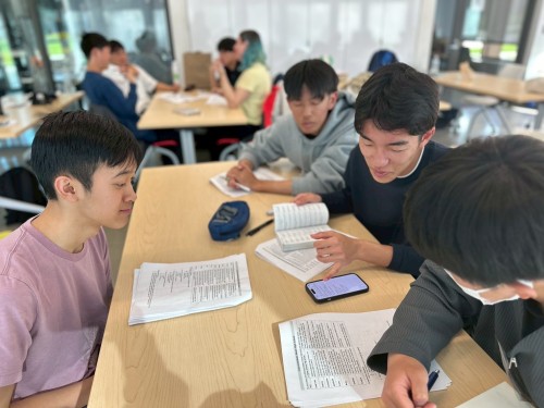 「カタチ」と言ってもむずかしいことではなく、いかにしてコミュニケーションを円滑に進めるかということに重きをおいたレッスンです。日常会話の中でよく使われるフレーズを用いて、簡単な会話練習をしたり、日本人が苦手な「l」と「r」の発音練習をしたりと、普段の日本の英語の授業では軽視しがちなことに注力した実践演習が中心でした。悩みながらも少しずつステップアップする生徒たちが「バイブル」のように手にしていたものが、「ターゲット1900」(英単語帳)でした。きっと何かの役に立つはず、空き時間があれば単語を覚えよう、という気持ちで持参していた生徒が多く、まさかの単語帳を片手にアメリカの地で学ぶ彼らに感心した場面でした。