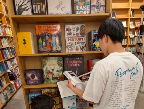 午後からは、現地の子供たちに折り紙を折ったりして遊ぶ予定でしたが急遽変更になりポートランドの中心部に位置するダウンタウンに行きました。そこでは、初めに世界最大級の書店であるPowell's Booksに行きました。この書店には100万冊を超える本がが3500の項目別に別れており、中には日本の漫画の英語版が売られていました。