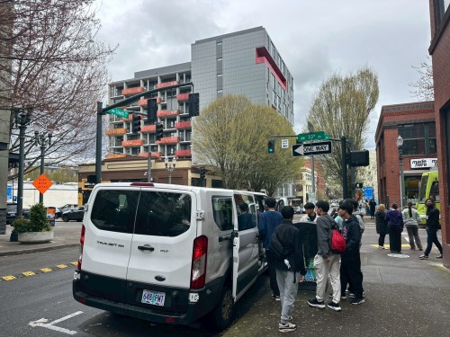 代わりにこの2日間で磨いた「相手に伝えたり受け取ったりする力(=コミュニケーション力)」を活かすことを目的に、またポートランドの街を体験するために、市街散策をすることになりました。引率教員や語学学校のスタッフとは別行動となり、生徒たちだけでの散策です。