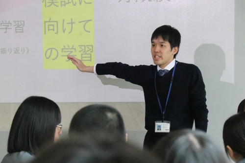 特進コースの先輩として新2年生もスタッフとして参加し、新入生に向けて入学後から頑張っておくと良いことや高校生活の大変なところを丁寧に伝えてくれました。