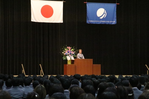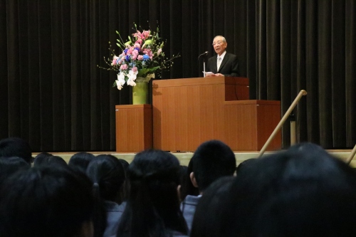 本校の建学の精神である「報恩感謝・実践」に触れ、私たちは万物に生かされ、多くの人から愛されて存在していることを説きました。常に感謝の想いを忘れない謙虚な姿勢を大切にしてほしいというメッセージです。