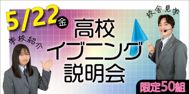 中学生と保護者の方を対象とした”高校イブニング説明会”を本校にて開催します。学校帰り・お仕事終わりにお気軽にご参加ください。