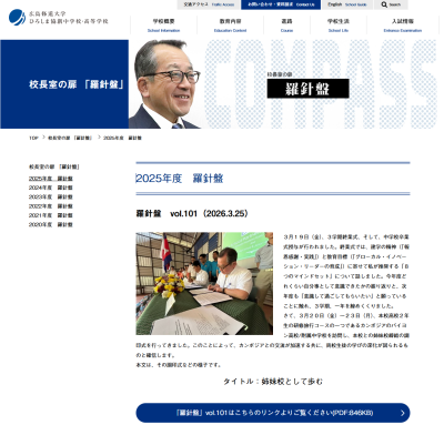 毎月発信している校長室の扉「羅針盤」ページを更新しました。
