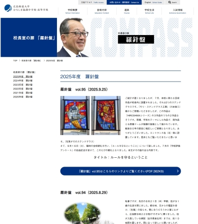 毎月発信している校長室の扉「羅針盤」ページを更新しました。