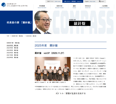 毎月発信している校長室の扉「羅針盤」ページを更新しました。