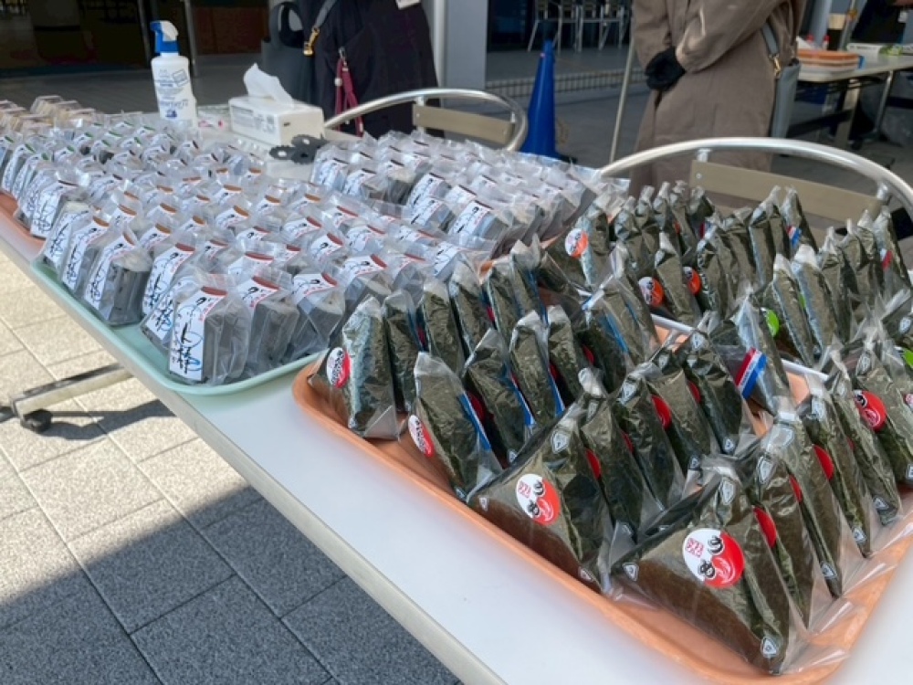 また、2020年度以降中断していた食品販売を復活させ、「うどん」と「おむすび」を販売しました。事前に行った生徒対象の食券販売では長蛇の列となり、当日の食券販売では予想を上回る人気で、食券はあっという間に完売しました。PTAスタッフも初めての飲食販売で不安を抱きつつも、すばらしいチームワークで無事に「うどん」と「おむすび」を提供することができました。