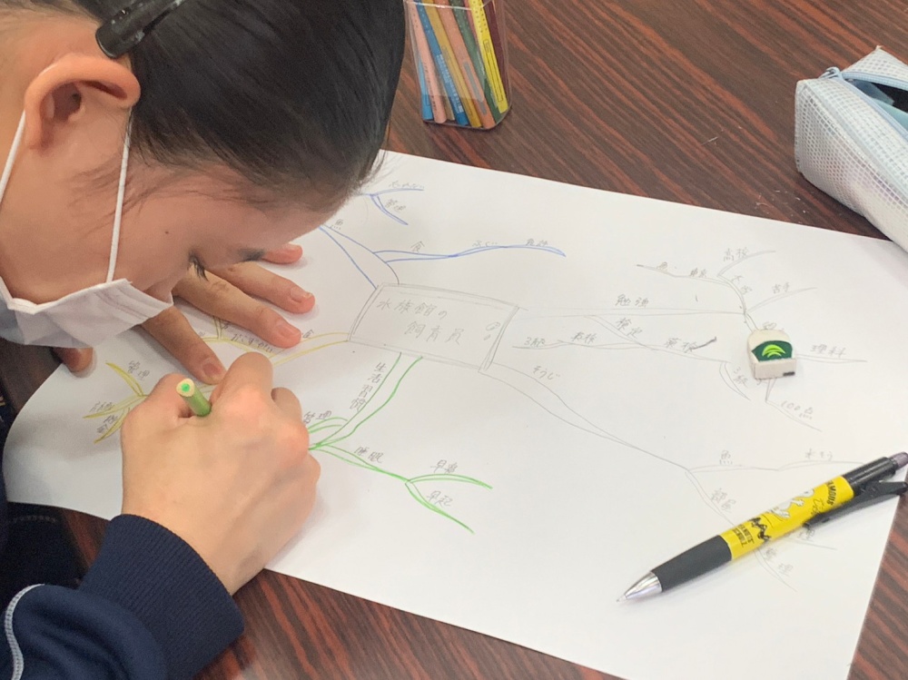 研修②では、「自分の夢」をテーマにマインドマップを行いました。