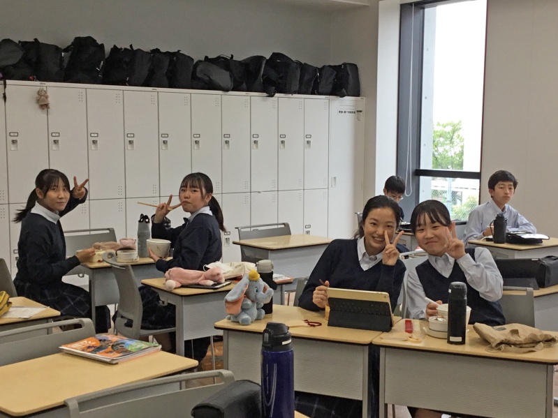 昼休みの生徒たちは教室でも距離が近くなって嬉しそうに食事をしていました。もちろん食べるときの会話は控えながら・・。