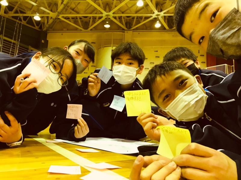 夜の研修では、一人ひとりの夢や目標を持ち寄り、学級目標に反映させる方法で学級作りが行われました。随所に協働的な取り組みが組み込まれており、生徒同士のコミュニケーションが活発になるよう進められていました。