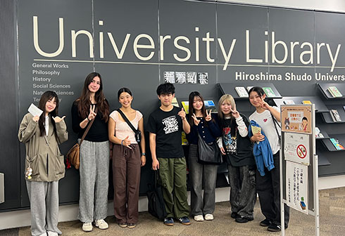 10月7日、本学の協定校である University Laboratory School (ULS) からの訪問を受けました。ULSは本学の海外協定大学であるハワイ大学マノア校に隣接する幼・小・中・高を有する学校です。このたびは高校生9名が平和学習を目的とする研修旅行で広島を訪問しました。前日の広島修道大学附属ひろしま協創高校での一日高校体験に続き、本学では日本の大学生活を体験してもらうプログラムを用意しました。