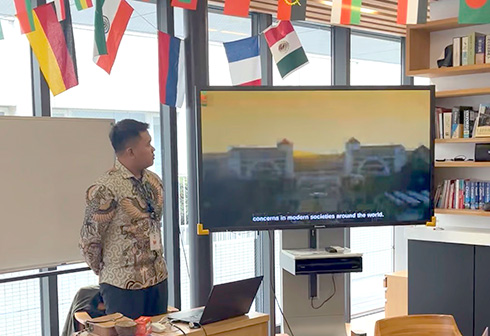 国際センターとのミーティング後、iCafeで修大生向けにムハマディヤ大学紹介のプレゼンも実施。2026年4月から交換留学生2名の受け入れが始まることもあり、参加したRAやバディ学生から質問が飛び交いました。
