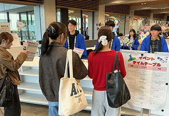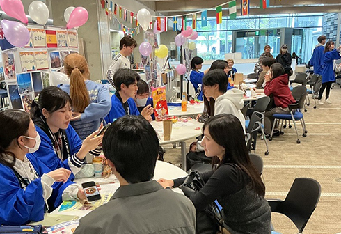 会場には各セミナーや交換留学(韓国、中国、ヨーロッパ圏、英語圏等)のブースの他、学習支援センターによる留学に向けた英語学習についての相談ブースが設置され、セミナー参加経験のある学生や担当教員が丁寧に対応する姿が見られました。また、本学に留学している交換留学生や彼らをサポートするバディ学生、iHouseで留学生を支えるRA(レジデント・アシスタント)も参加。交換留学生たちは日本語で自身の経験を伝えるなど、留学の魅力を共有しました。