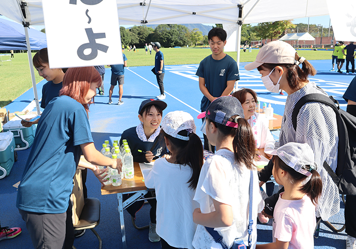 プログラムの最後には、立候補した小学3年生以上の参加者と本学陸上競技部員とで合同リレーを行い、盛り上がりのなか無事終了することができました。