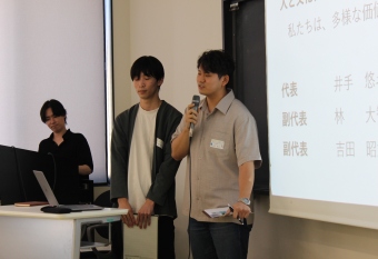 井手 悠斗さん   (経済科学研究科博士前期課程経済情報専攻1年) 吉田 昭太朗さん(経済科学部現代経済学科4年) 林 大智さん (経済科学部現代経済学科4年)  |