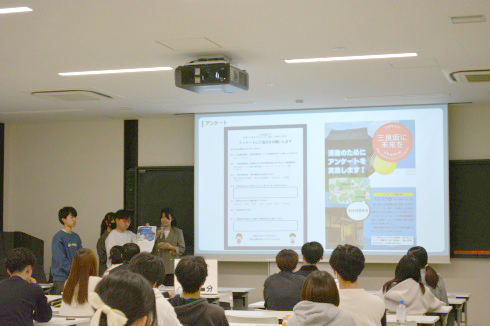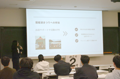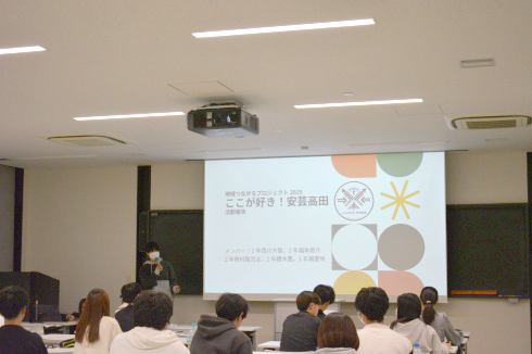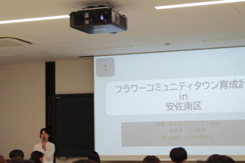10月29日、「地域つながるプロジェクト中間報告会」を8302教室にて開催しました。学生38人、教職員15人、計53人が参加し、活動の状況や内容について、11プロジェクトチームが報告しました(課題自由型7件、課題設定型4件)。