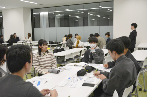 また、所属プロジェクトの垣根を超え、全参加学生がランダムに編成されたグループで活動内容について話し合う場を設けました。各グループでは、プロジェクトの進め方や困っていることなどを共有し、活発な意見交換が行われました。