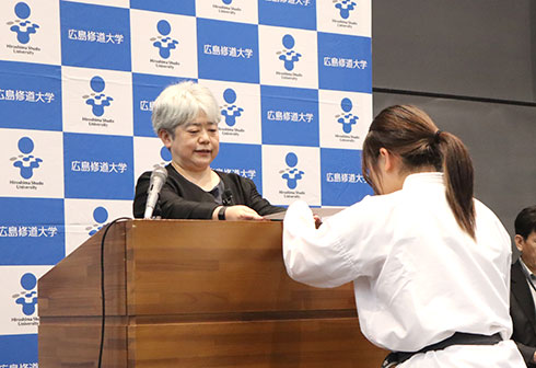式では、学業や課外活動において、自ら目標を立てて努力し、優秀な成績を残した表彰者へ、矢野泉学長より表彰状が授与されました。