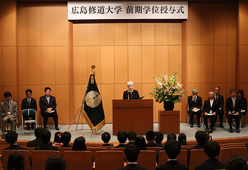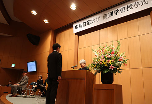 9月24日、本学7号館学術ホールにて2025年度前期学位授与式が挙行され、学部生60名に学位記が授与されました。 式では、矢野学長より告辞があり、続いて学校法人修道学園 林正夫理事長、広島修道大学同窓会 松井敏会長より祝辞をいただきました。 卒業生の皆さん、ご卒業おめでとうございます。 SmaSurf クイック検索 関連リンク 2025年度NEWS
