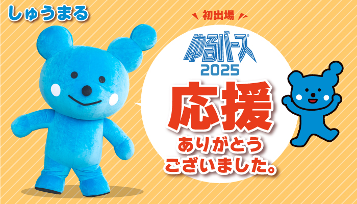 本学の公式マスコットキャラクター「しゅうまる」が、全国のマスコットキャラクター人気投票イベント「ゆるバース2025」に初出場し、全299のキャラクターのうち、102位と健闘しました。 「しゅうまる」をたくさん応援していただき、ありがとうございました。 引き続き「しゅうまる」への温かい応援をお願いいたします。 関連ニュース ゆるバース投票・ランキング(外部リンク) 公式マスコットキャラクター「しゅうまる」が「ゆるバース2025」に初出場します 関連リンク ゆるナビ