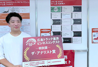10月12日に開催された第4回広島トラックビジネスコンテスト「とらビズ!」にて、本学の松浦 凱人さん(商学部経営学科3年)のプラン「IoT & T」が、「特別賞 ザ・アナリスト賞」を受賞しました。