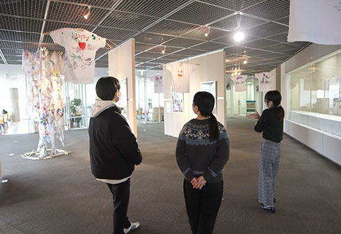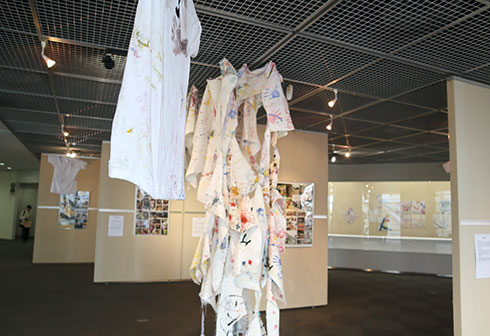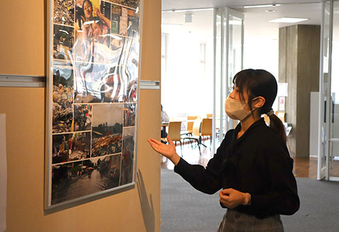 この企画展は8月から9月に人文学部の学生9名がフィリピンのセブ島を訪問し、国際ボランティア団体DAREDEMO HEROと共に支援活動による成果物を展示したもので、貧困層出身の高校生へ美術作品制作を支援して完成した作品や、一般にはあまり知られていないセブ島貧困地区の現状や、9月30日にセブ島を襲ったマグニチュード6.9の地震災害、11月4日、9日の大型台風25号、26号の被害状況に関する写真等も展示を行いました。