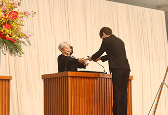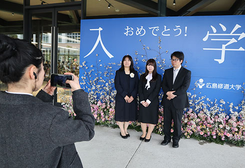 式では佐渡紀子副学長からの学事報告に続き、矢野泉学長の入学許可宣言ならびに学長告辞、学校法人修道学園 林正夫理事長及び、広島修道大学後援会 原田直実会長から祝辞がありました。
