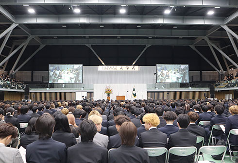 4月1日、本学体育館にて2026年度入学式を実施し、学部・大学院あわせて1569名の新入生が入学しました。