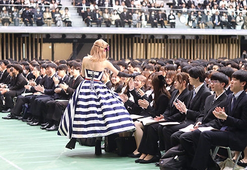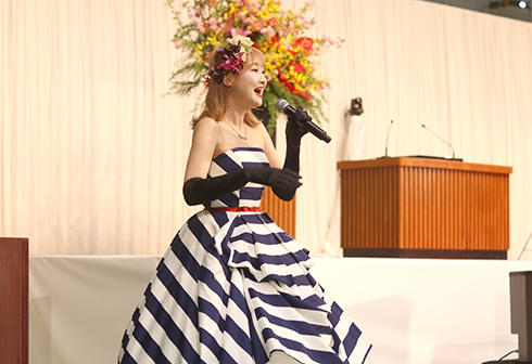 入学式後には、スペシャルゲストとしてファンタジー系シンガーソングライターDressingちゃんが登場し、新入生に向け歌やメッセージをいただき、会場は大いに盛り上がりました。