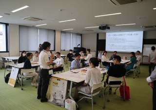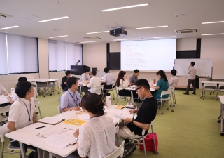 実践のセッションでは、「どうすれば入学定員充足を維持できるか?」をテーマに、各グループで解決策を検討し、全体で発表を行いました。この過程となるデータ分析の場面ではジグソー法が用いられました。ジグソー法とは、グループのメンバー各自が異なるトピックの「専門家」となり、他グループの同じ専門家同士でそのトピックを習得した後、自グループに戻り習得したことを教え合うという協同学習の手法の一つです。これにより、参加者全員がアクティブ・ラーニングを実際に体験するとともに、本学を取り巻く環境と現状について理解を深めることができました。